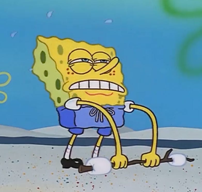 Rest between sets is okay: Without dragging it out, I always let myself and people I train take as much rest as they need. You want to be explosive during the lift, not sucking wind while your muscles have more give. When I lift heavy, I take about 1-3 minutes between sets to yap, get water, steady my breathing, even the heinous “sit on the machine so you can’t have it while I check my phone”. In fact, many of my Substack replies are generated in between sets. If you’ve ever pictured the author of my comments so invested that he has veins bulging, shirt dripping with sweat, panting etc., you were right! Teehee.